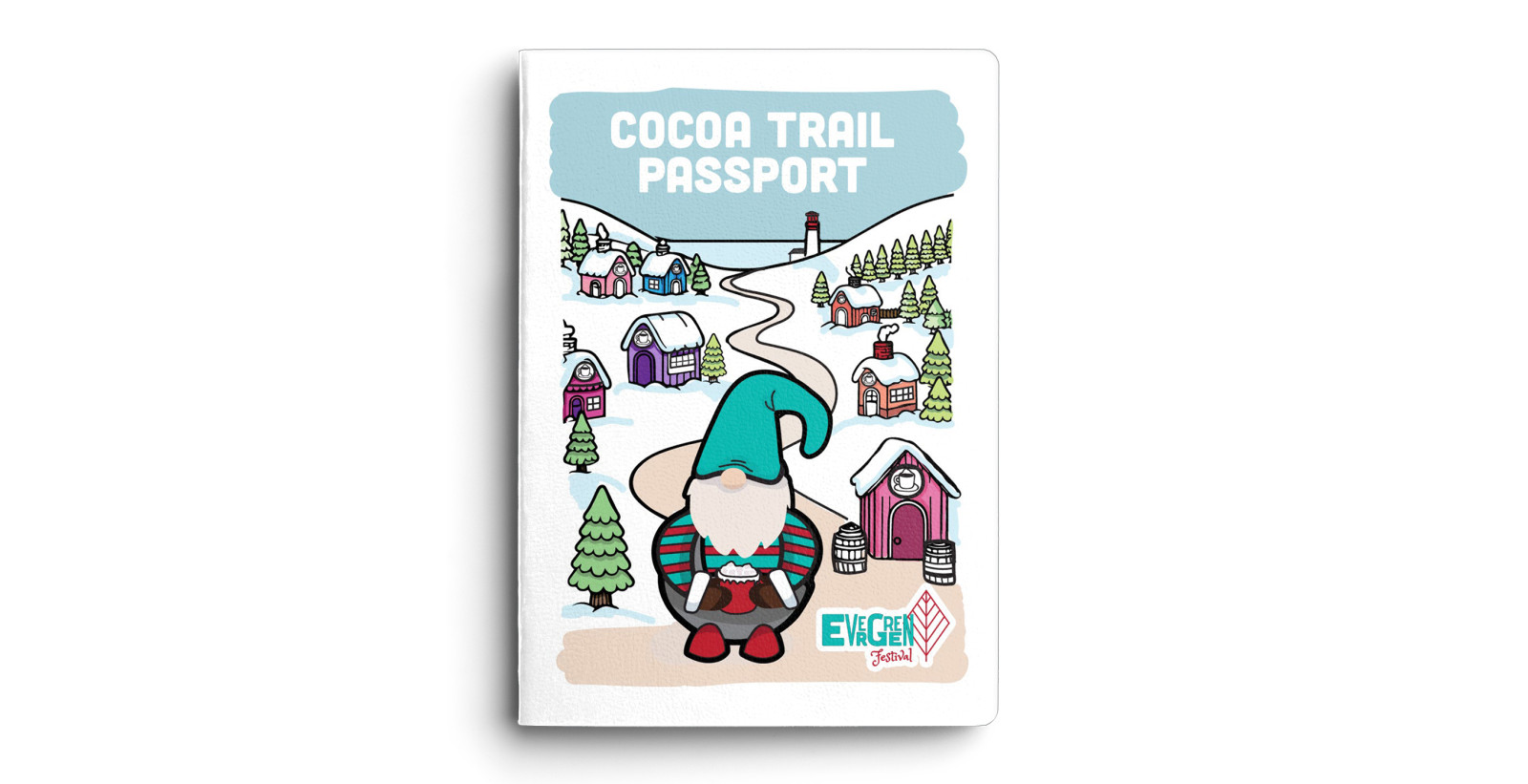 Grab a Cocoa Trail Passport at a participating business or at the Evergreen Festival's Winter Welcome Kiosk in the Salt Yard on the Halifax Waterfront, and collect 5 stickers from participating businesses, and you could win a festive Evergreen Prize Package!