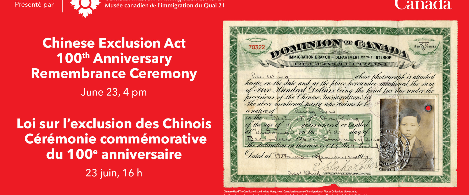 On June 23, 2023, the Honourable Senator Yuen Pau Woo, the Honourable Senator Victor Oh and Action! Chinese Canadians Together (ACCT) Foundation will be hosting a National Remembrance event in the Senate of Canada Chamber on the 100th anniversary of the enactment of the Chinese Exclusion Act in Canada.