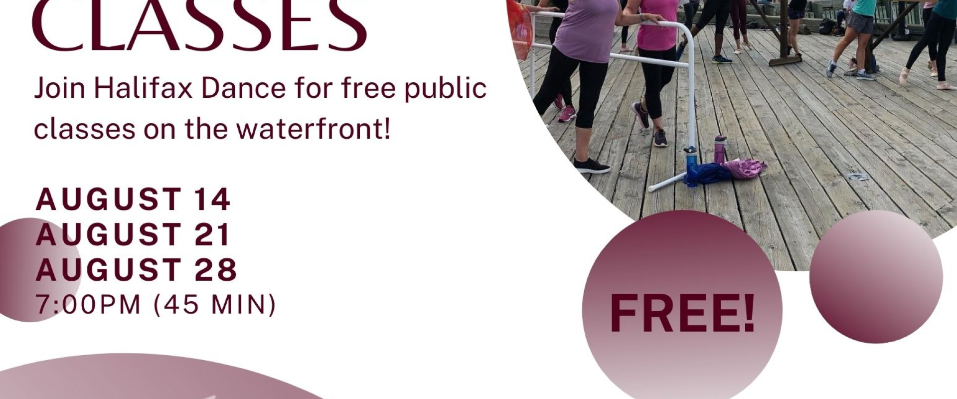 Halifax Dance will offer a variety of engaging workshops throughout the downtown core, with the serene and picturesque background that is the Atlantic Ocean for participants to enjoy as they take part in guided-movement classes. Dancing Downtown will feature 3 classes each week for a period of 3 weeks, running throughout August. Workshops will be available to young dancers, adults, and older adults who wish to join in on the joy of dance