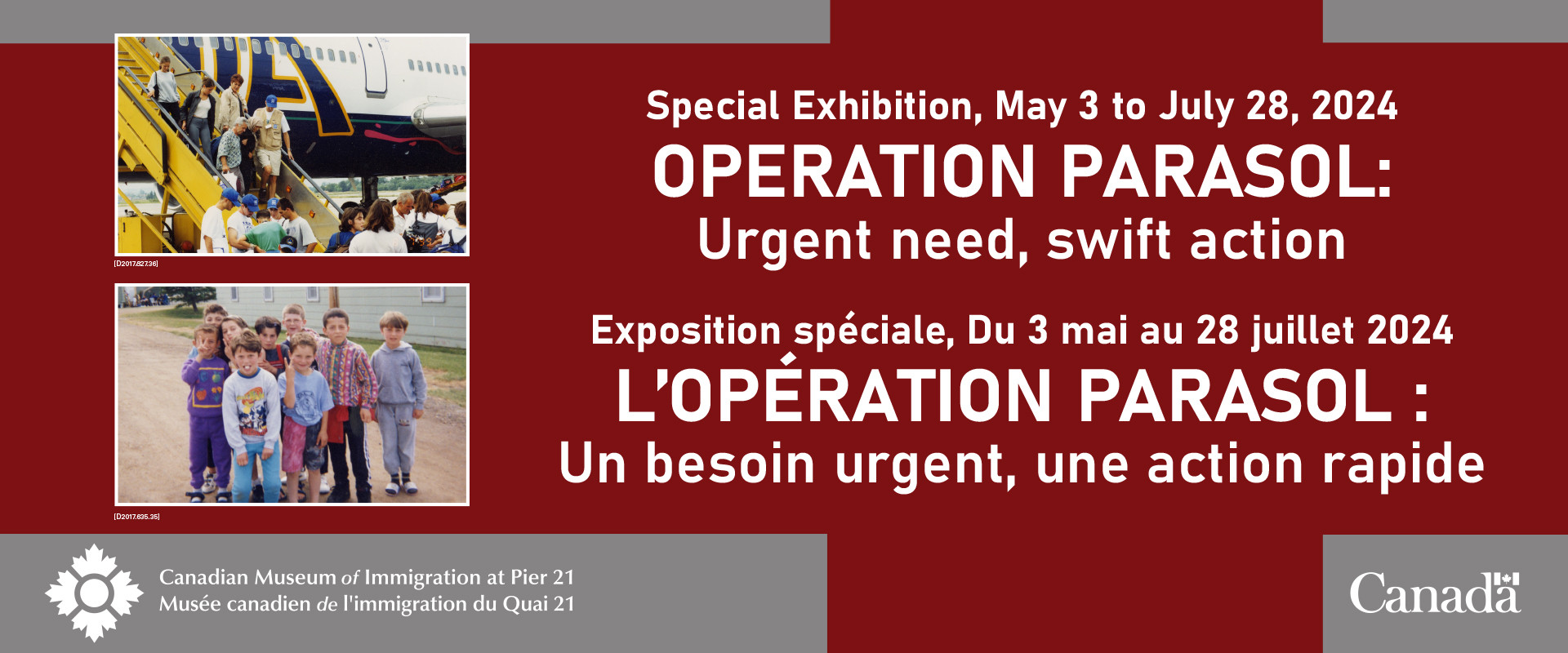 The exhibition reception will include speakers from the Canadian Museum of Immigration at Pier 21, representatives of government, including dignitaries representing Albania and Kosovo, as well as the Canadian Red Cross and the Canadian Armed Forces, who were instrumental in executing Operation Parasol.