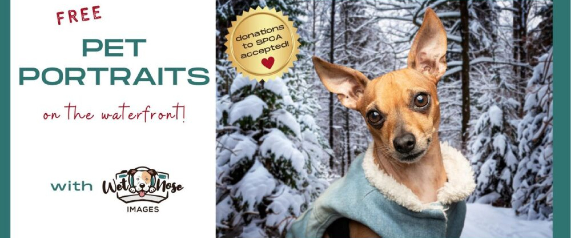Bring your winter-loving pups to get a free portrait on the waterfront (donations for the SPCA are encouraged and much appreciated)! Feel free to dress your dogs in some festive or seasonal attire when they're posing in front of our wintry backdrop. Expertly handled and photographed by Cassie of Wet Nose Images, who has been creating pet portraits professionally for 8 years. We highly encourage you to bring a pocketful of your dog's favourite treats to reward them for their modelling skills.