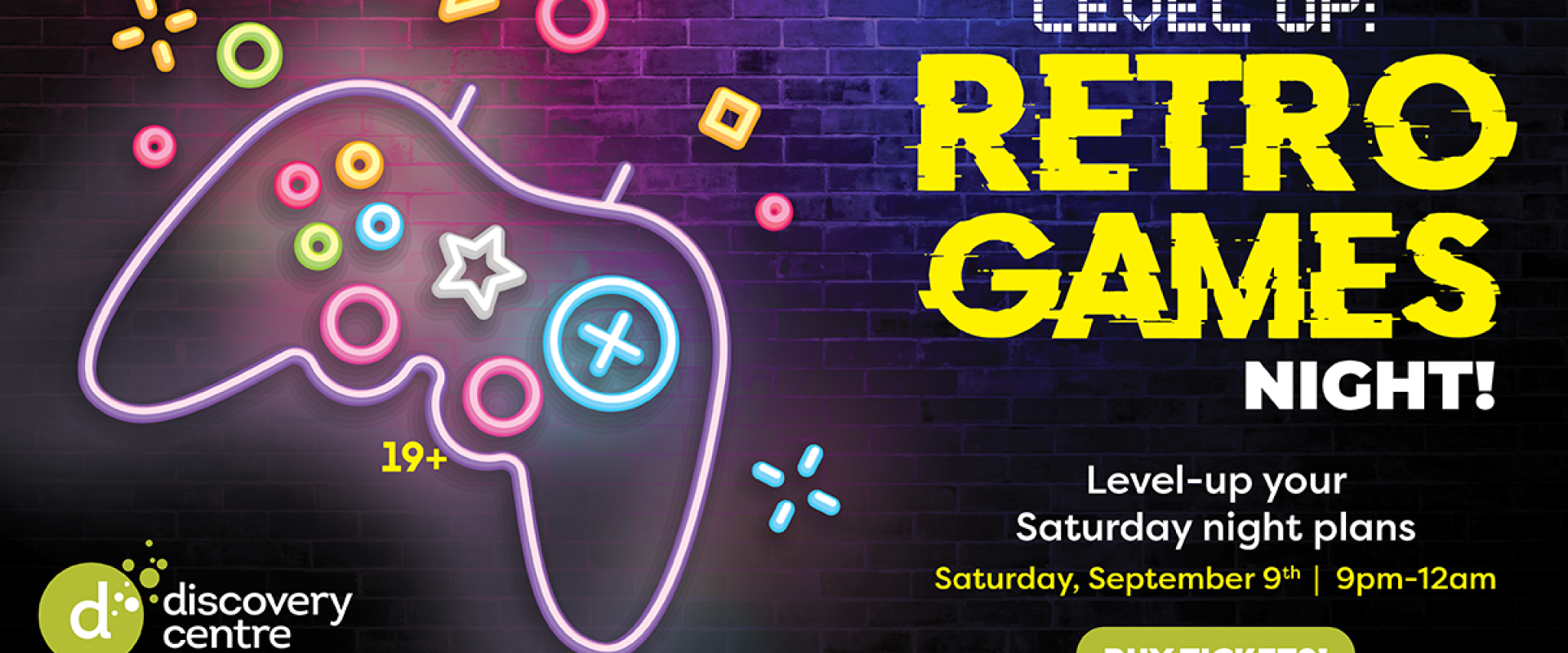 BUY TICKETS: https://thediscoverycentre.ca/level-up-19-retro-games-night/