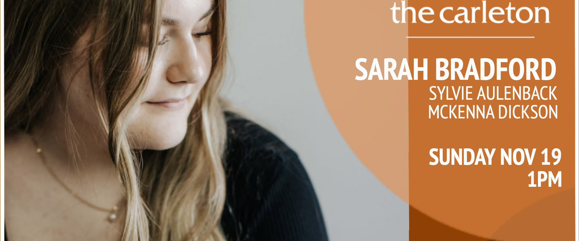 Newcomer Sarah Bradford – along with Sylvie Aulenback and Mckenna Dickson – celebrate the release of Sarah’s first single with a show at The Carleton on Sunday, November 19th.