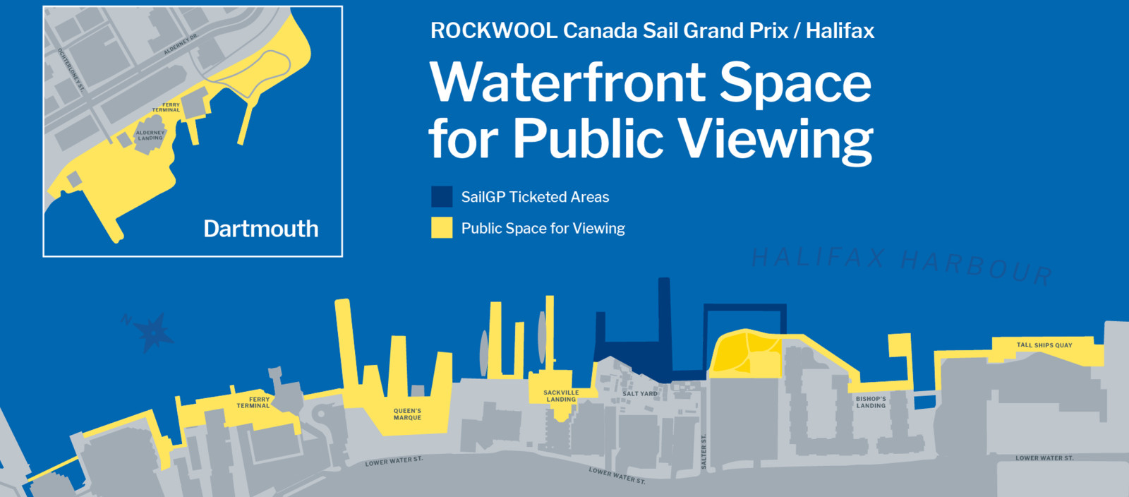 • The Halifax Waterfront will be the home of the SailGP Race Stadium and will serve as both the pre- and post-racing event hub. Thousands of participants and spectators will pass through this area during the timeframe of the event.
